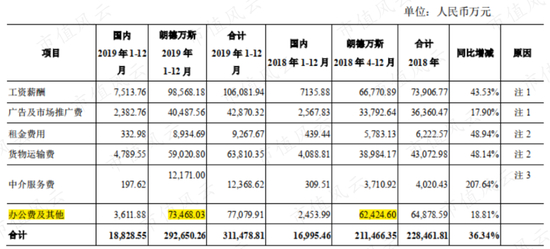 根据木林森对交易所2019年报问询函回复,2019年朗德万斯开始从一家生产型企业转变为销售型企业,在剥离制造业务同时,又加大了销售业务拓展,销售费用中的工资薪酬、广告宣传费、租金、运输费、中介服务费均较快增长。
