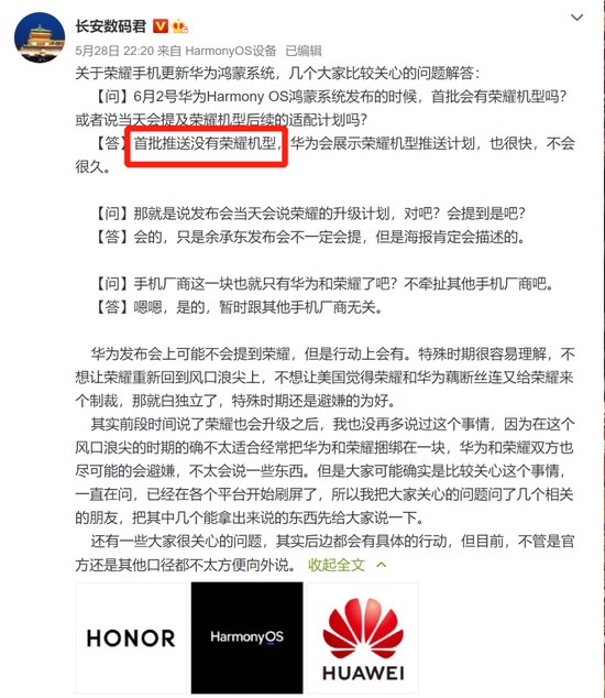 随后,更有数码博主补充,首批推送没有荣耀机型。