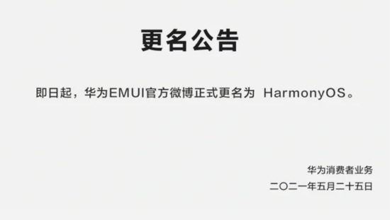 同日,华为宣布,华为EMUI微博正式更名为Harmony OS。