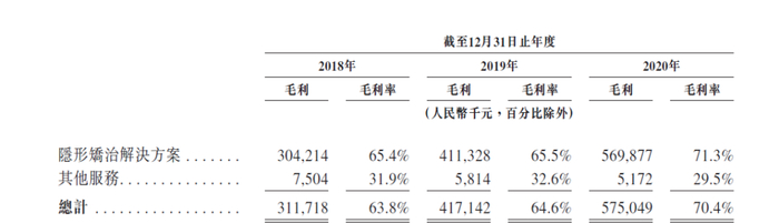 同期,时代天使隐形矫治解决方案毛利率分别为65.4%、65.5%、71.3%。其中,2020年,该数据同比提升5.8个百分点。