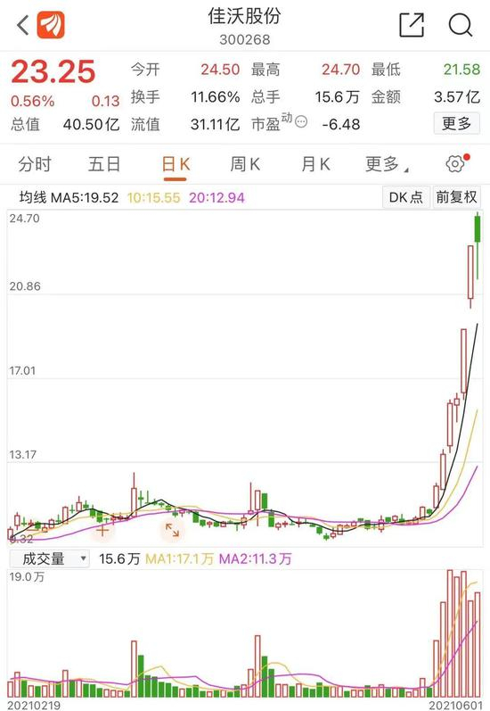 此前佳沃股份的强势走势还是引起市场广泛关注。5月31日,在公布定增方案一周之后,佳沃股份继续涨停。截至当日收盘,报23.12元,一周内股价实现翻番。