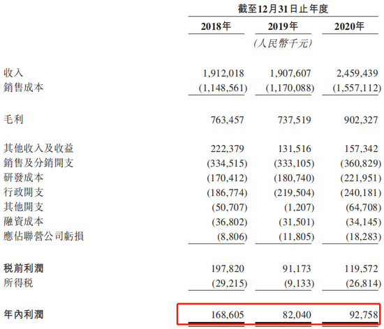2018-2020年,东软医疗的净利润分别为1.68亿元、8204万元及9275万元。2019年和2020年净利润相差不大,2019年净利润仅占2018年的48%,2020年净利润占2018年的55%。