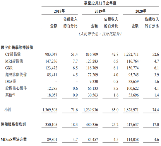 根据招股书,东软医疗的产品和服务涵盖所有主要类型的医学影像器械,例如CT、MRI、DSA、GXR、超声和PET/CT,以及与医学影像器械搭配的MDaaS平台解决方案。