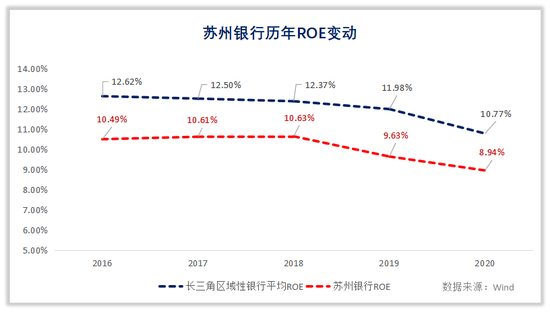 同时,依赖对公业务的苏州银行盈利水平也常年低于同业,扩张速度明显落后。
