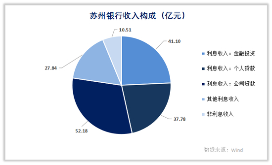 2019年在A股上市成为江苏省第九家上市银行,在苏州当地存贷款份额常年位列中小银行首位,营收规模达104亿元,其中利息收入占比约93.8%,支柱业务为公司贷款和金融投资。
