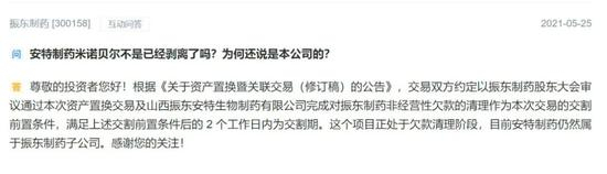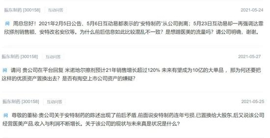 尽管结果如其所愿,但振东制药在短短几个月对安特制药的态度发生如此大的转变,同样引起投资者的注意。有人直接问:“2021年2月5日公告、5月6日互动易都表示 “安特制药”从公司剥离;5月23日互动易却一再强调达霏欣搽剂销售额、安特改名安欣等。为什么前后信息如此比较混乱不一致?是想蹭医美的流量吗?请公司明确,谢谢。”