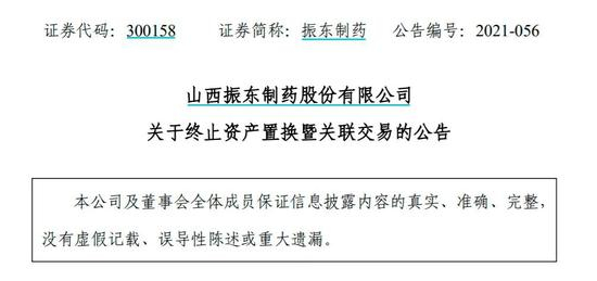 6月1日晚间,振东制药发布公告,终止资产置换暨关联交易,即不再剥离长期亏损资产安特制药。