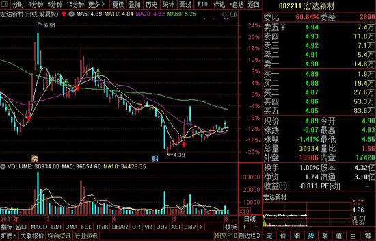财务数据显示,2020年,宏达新材实现净利润5270万元,扣除非经常性损益后的净利润4582万元。2019年公司出现亏损,2018年、2019年公司扣除非经常性损益后的净利润均为负。目前,公司存货出现可能无法变现及应收账款出现逾期风险,合计金额接近4亿元。