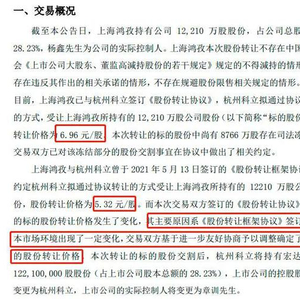 至于交易价格的变更,宏达新材给出的解释是,主要原因系《股份转让框架协议》签订后资本市场环境出现了一定变化,交易双方基于进一步友好协商予以调整确定了最终的股份转让价格。