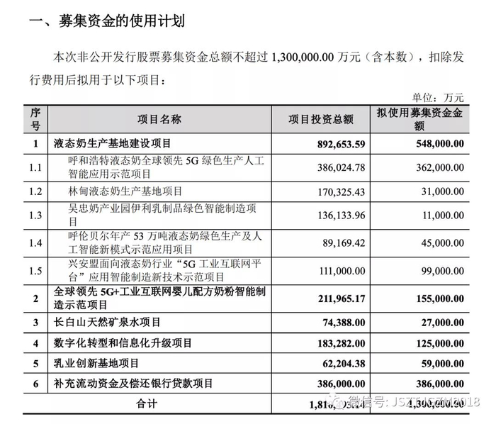 6月4日,伊利股份发布《2021年度非公开发行A股股票预案》公告,拟募集资金不超过130亿元。以伊利股份6月4日收盘时市值计,占比约为5.40%。