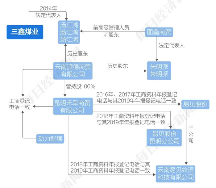 易见股份与其2018年第一大保理客户三鑫煤业的关系图解