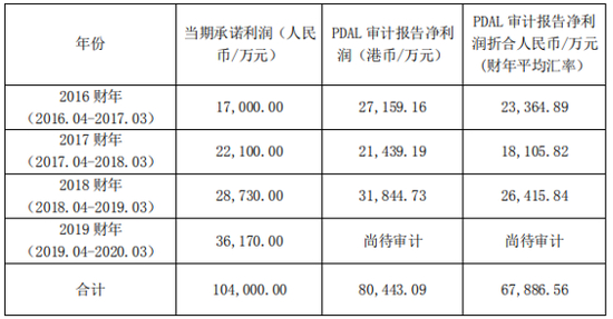 PDAL业绩承诺与实现情况: