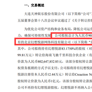 值得注意的是,天神娱乐本次出售的幻想悦游股权是曾以34亿元的价格收购的。