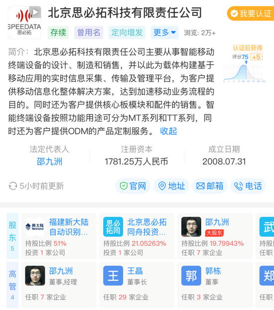 细心的投资者在查阅上述公司的资料中发现了上市公司背景,思必拓科技为上市公司新大陆旗下公司。