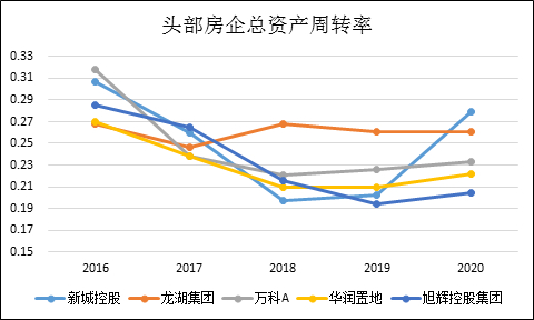 Wind数据显示我们统计百家房企的平均总资产周转率在过去5年竟然出现了趋势性的下滑,从2016年的0.25下滑至2020年的0.21。