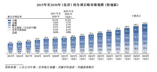 1、就零售销售收入而言,中国正畸市场已经由2015年的34亿美元增长至2020年的79亿美元,复合增速达18.1%,并有望于2030年达到296亿美元,2020-2030年的复合增速预计为14.2%。