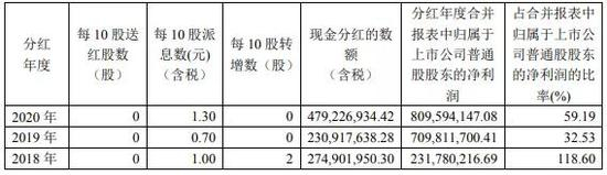 近年分红比例近六成