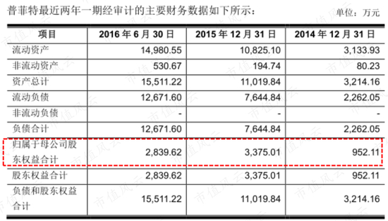 被收购之时,普菲特的净资产只有2840万元,上市公司却给出较净资产溢价高达22倍,即6.4亿元的价格收购!