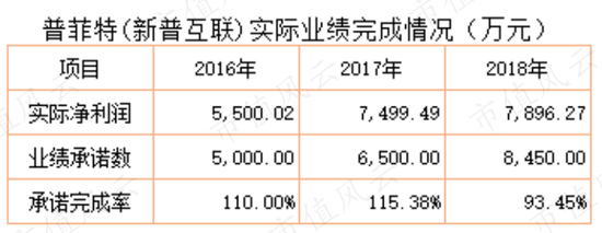 普菲特原股东承诺北京普菲特2016年、2017年及2018年的考核净利润分别不低于5000万元、6500万元及8450万元。