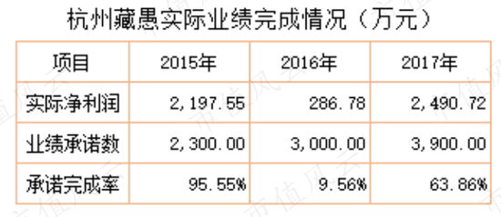 杭州藏愚的8位原股东承诺杭州藏愚2015年、2016年、2017年的考核净利润分别不低于2300万元、3000万元、3900万元。