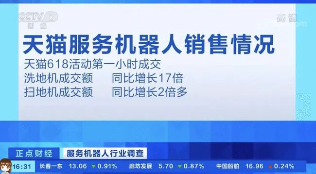 来自京东、天猫等各大电商平台的数据显示,618年中大促期间以洗地机、扫地机器人、吸尘器等为代表的服务机器人销售持续火爆,销量暴增。另外,证券时报记者发现,A股服务机器人相关企业近期业绩普遍大增,如科沃斯(603486)、石头科技(688169)、九号公司(689009)、兆威机电(003021)、汉王科技(002362)、朗特智能(300916)等,部分公司公开表示,服务机器人相关产品或业务销售大增。