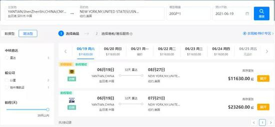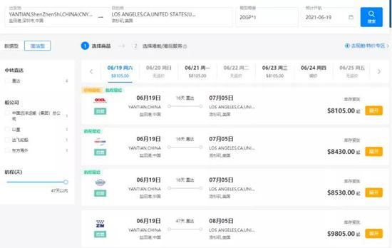 若出发地改为最近受疫情影响的盐田港,运价相较上海港还要高出一些。