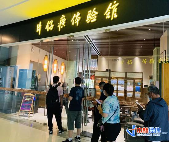 21日早上,中新经纬(微信号:jwveiw)来到片仔癀体验馆北京银河SOHO门店。距离开门时间9点仍有一刻钟,门口已有数人排队。