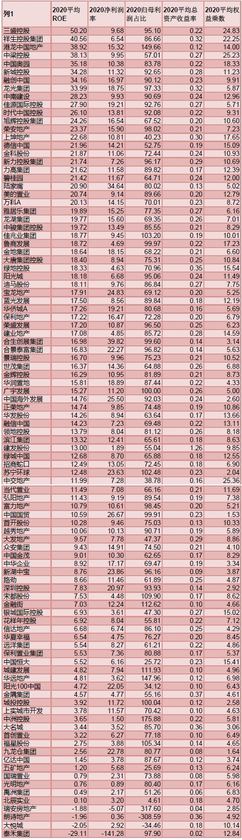 “内卷”这个词适用到房地产业,就变成了“管理红利”、ROIC、ROE。在行业洗牌阶段,行业集中度将持续提升,有更强综合竞争力的企业会获得更多的市场份额。新浪财经上市公司研究院统计A+H两地规模较大的百家房企,通过杜邦分析梳理各房企的ROE,从中找出各房企的盈利模式,试图找寻行稳致远的“剩利者”。
