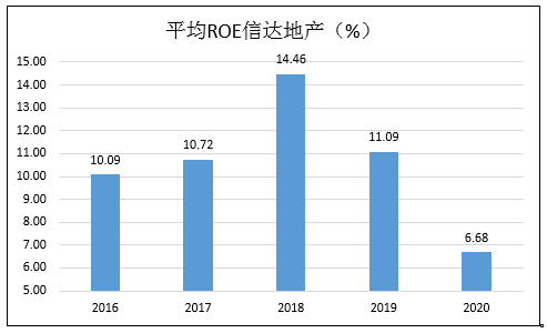 截止2020年,信达地产的平均ROE降低至仅有6.68%,其在所有统计的100家上市房企中位列第74位,处于下游水。