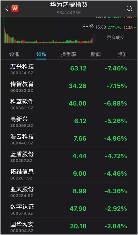 6月22日,华为鸿蒙概念板块午后持续走弱,其中,科蓝软件盘中跌超10%、万兴科技盘中一度跌超8%。截至收盘,万兴科技跌7.46%,传智教育跌7.15%,高新兴跌5.26%。
