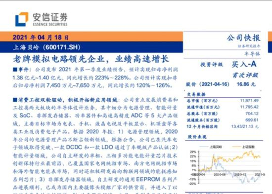 从近期券商研究所的覆盖结果来看,中信证券在6月18日的电子行业半导体板块MCU芯片专题研报中,建议关注该公司;针对上海贝岭较为详细的介绍,仅在安信证券4月18日发布的《老牌模拟电路领先企业,业绩高速增长》研报中提到。