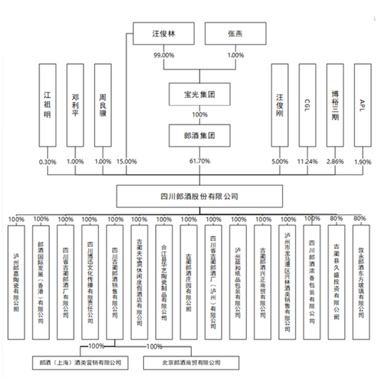 郎酒体系之外,汪俊林通过宝光集团控制的房地产公司主要是泸州宝光房地产开发有限公司和古蔺郎酒房产开发有限公司。