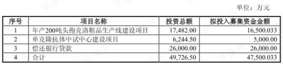 2013年7月24日,上市公司再次发布定增预案,拟发行不超过5440.70万股募资5亿元,用于年产200吨头孢克洛粗品生产线建设、单克隆抗体中试中心建设,以及偿还银行贷款。