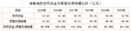 2015年,海南海药账面货币资金12.22亿元,与带息负债规模相当,但是该公司没有去偿还部分借款,甚至继续举债。