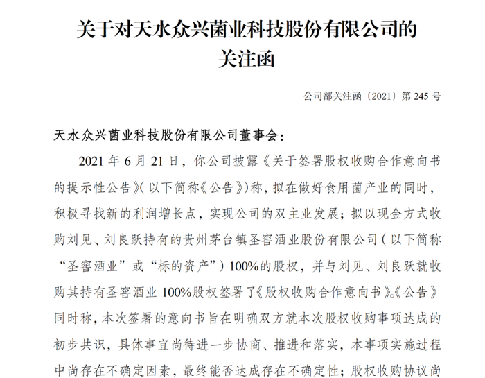 金针菇不好卖?众兴菌业拟跨界酱酒 涉嫌泄露内幕信息 遭深交所问询