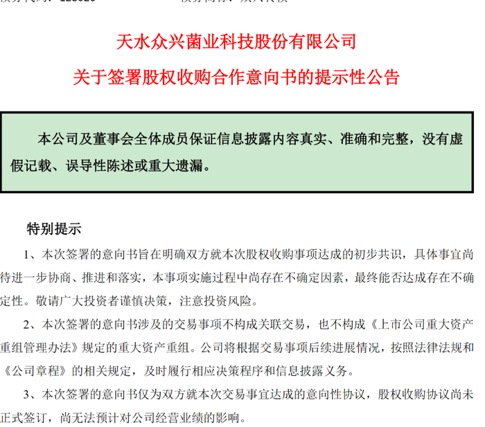 6月22日收盘之后,众兴菌业收到了深交所的关注函,对众兴菌业的股价持续上涨表示关注,请众兴菌业对有关事项进行核实说明。