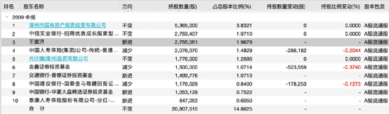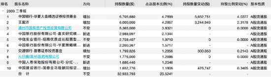 在这只“神股”股价不断上涨之下,吸引了不少大佬纷纷买进。当年曾创造七年十倍奇迹的“公募一哥”王亚伟在2009年中报披露时,他管理的华夏大盘精选成为片仔癀的第九大股东,并在2009年三季度大幅增持,成为片仔癀的第一大股东,持股数量670.59万股,占比4.79%。