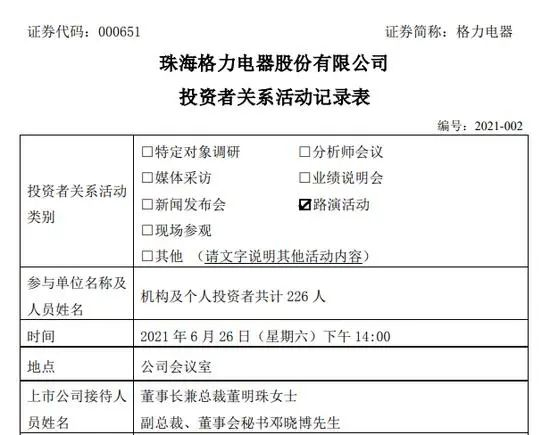 格力电器同期披露的投资者关系活动记录也很具信息量。