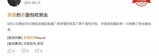 在黑猫投诉,奈雪的茶也有很多类似食品安全的投诉。此前,奈雪的茶还因为出售的欧包发霉变质,深夜道歉,引发关注。