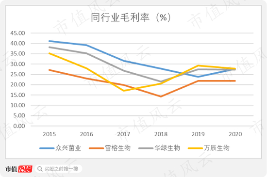 2019年,众兴菌业的毛利率逆势下滑,主要由于产品质量不稳定,销售价格下降。