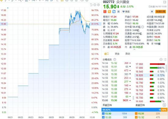 于是,众兴菌业适时地发出了对圣窖酒业的收购意向,收购未定,股价先行,如今公司已经收获六个连续涨停板,6月28日至6月30日,公司股票成交额已连续三天超过10亿。