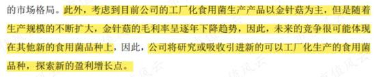 并且,公司还特意指出,金针菇的毛利率逐年下降,公司将研究新菌种,探索新的盈利增长点。
