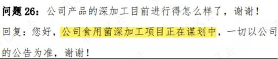 根据2021年4月13日业绩说明会中的内容,风云君了解到,公司的食用菌深加工仍在谋划中。