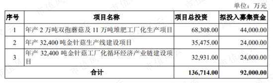 不过,2017年底,众兴菌业还是通过发行可转债募到了9.2亿,用于双孢菇和金针菇的项目建设。