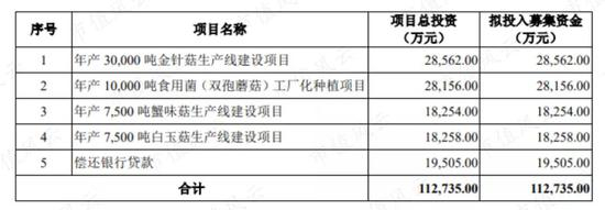上市后,公司便疯狂募资,募投项目几经变更,最后几乎都用来扩大金针菇产能。