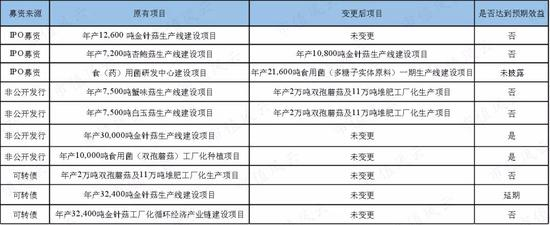 首先,IPO募投项目中,年产7,200吨杏鲍菇生产线建设项目、食用菌研发中心建设项目均改变了用途,变更后均转而生产金针菇。