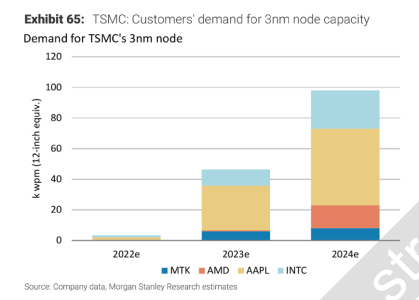 2022-2024年,台积电3nm芯片市场需求预测