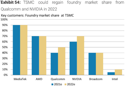 2021-2022年,台积电重要客户的业务占比预测