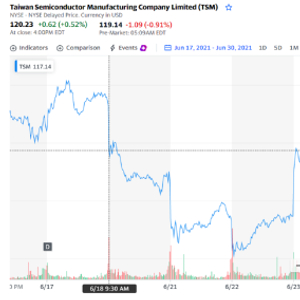 6月17日-6月30日,台积电股价变化趋势