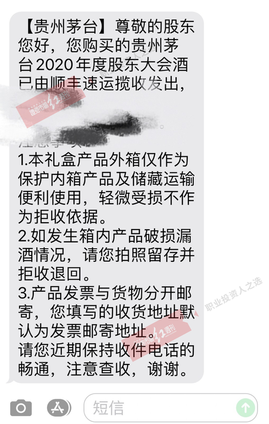 茅台礼盒发货提醒短信截图